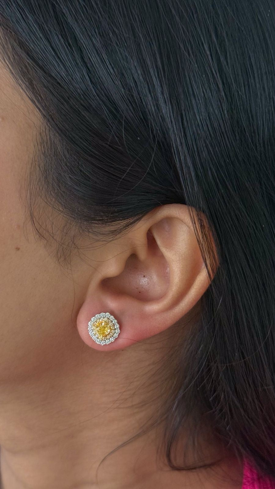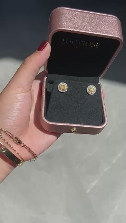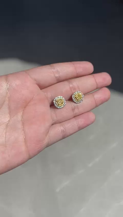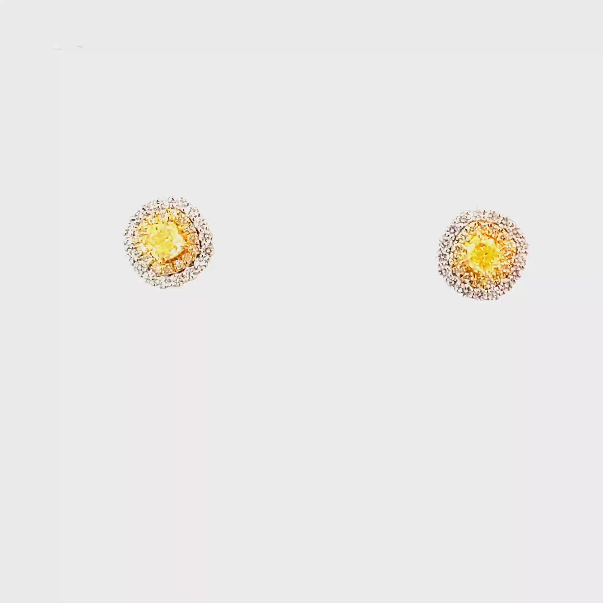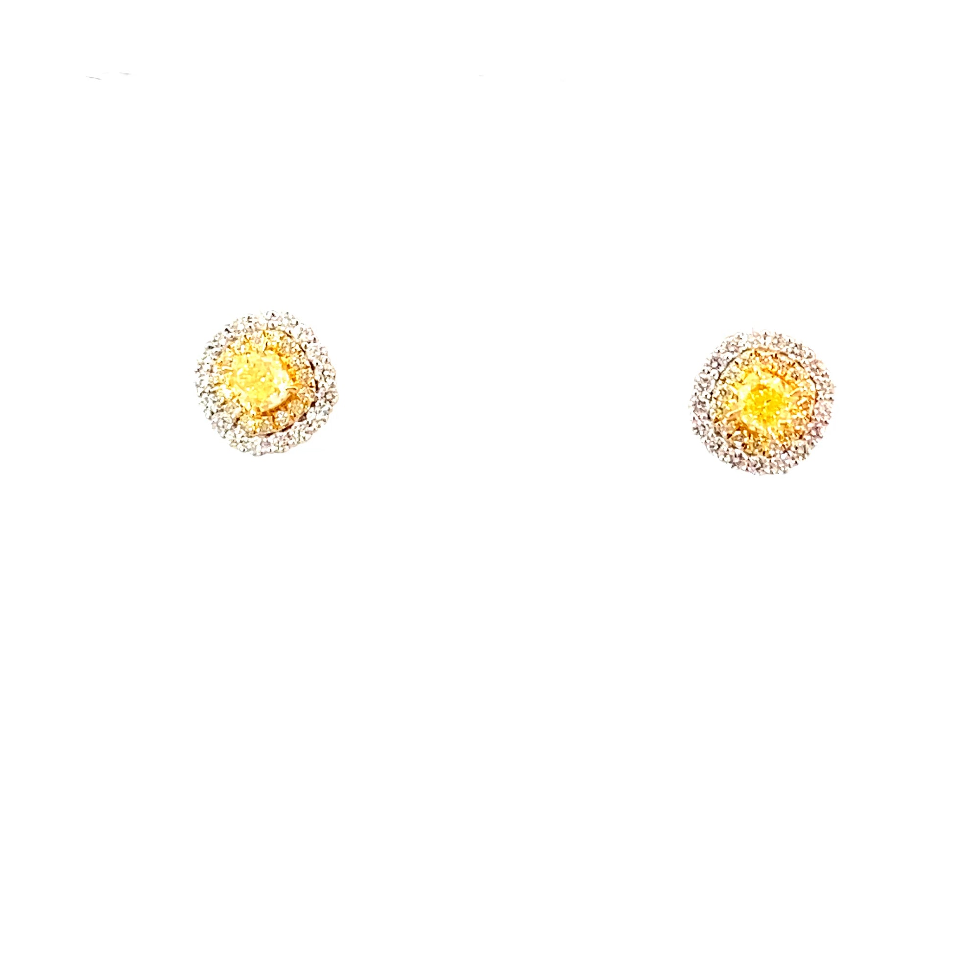 18K Yellow Gold Earrings Wt. Yellow Diamond centre & Natural Diamonds Halo