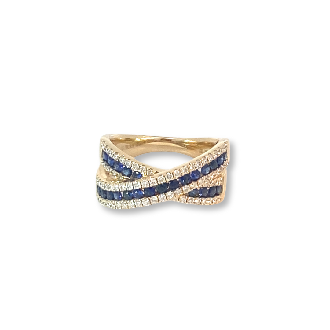 14K Yellow Gold , Diamond and Blue Sapphire