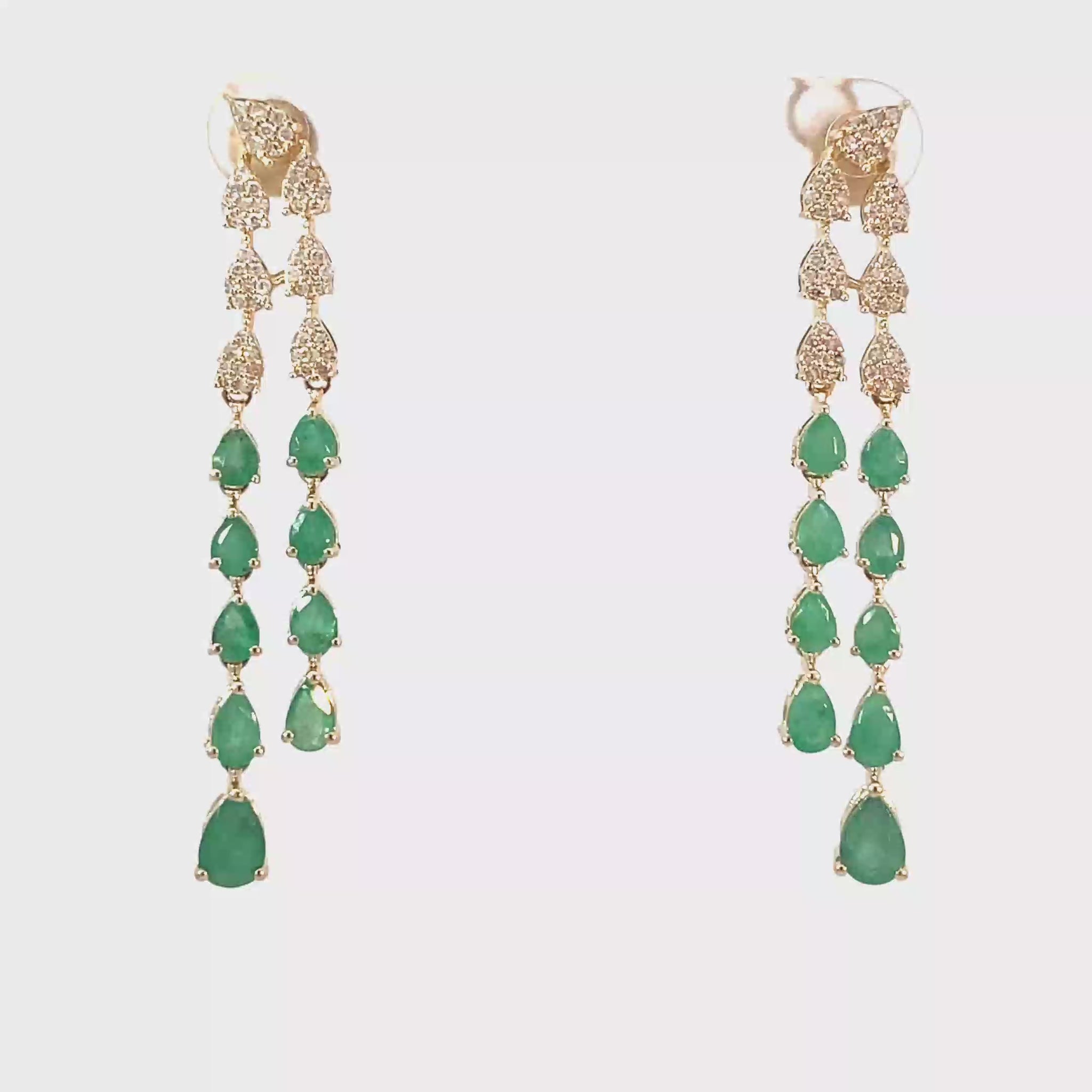 Elegant Drop Long Earrings with Emerald and Natural Diamond