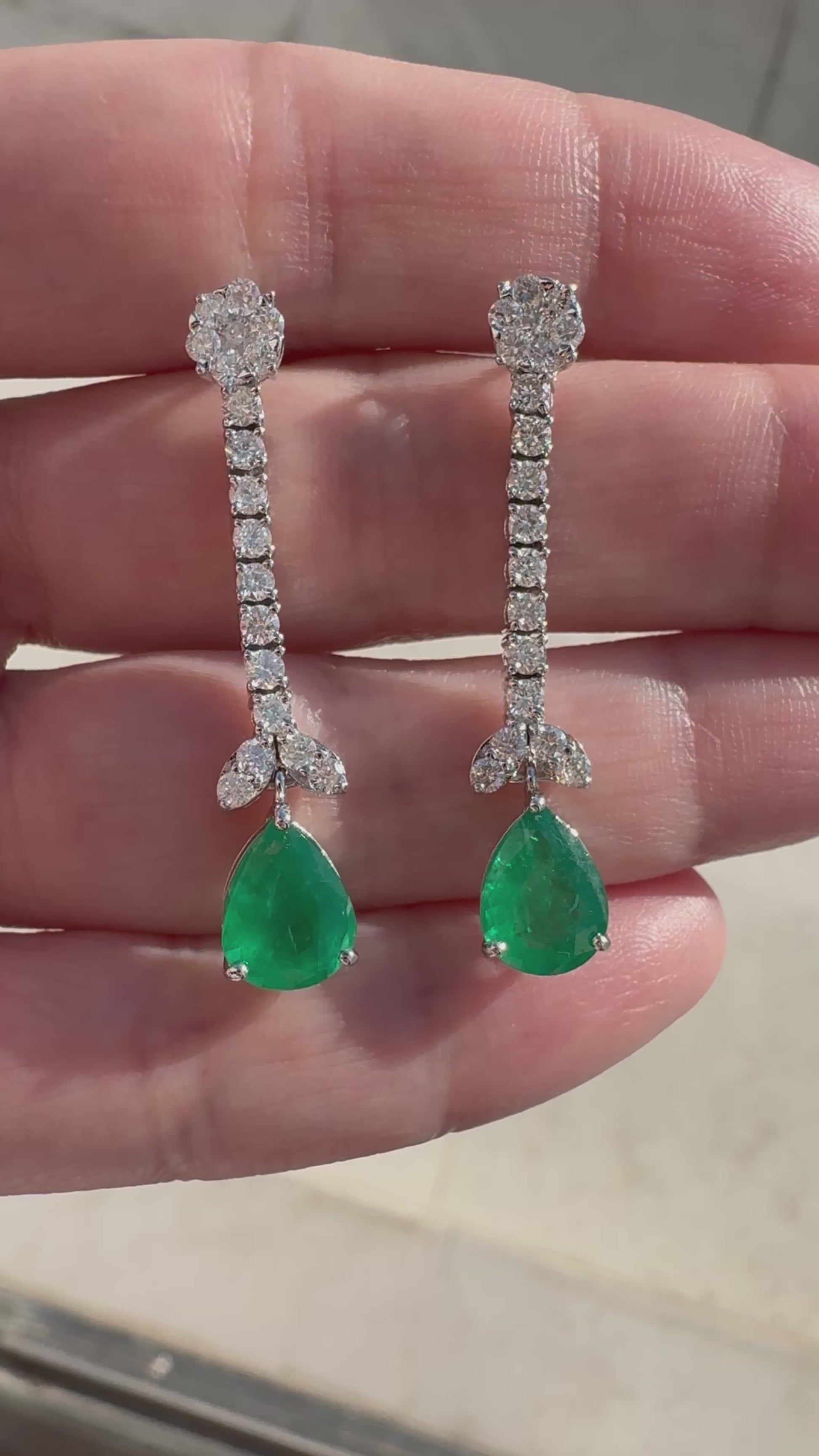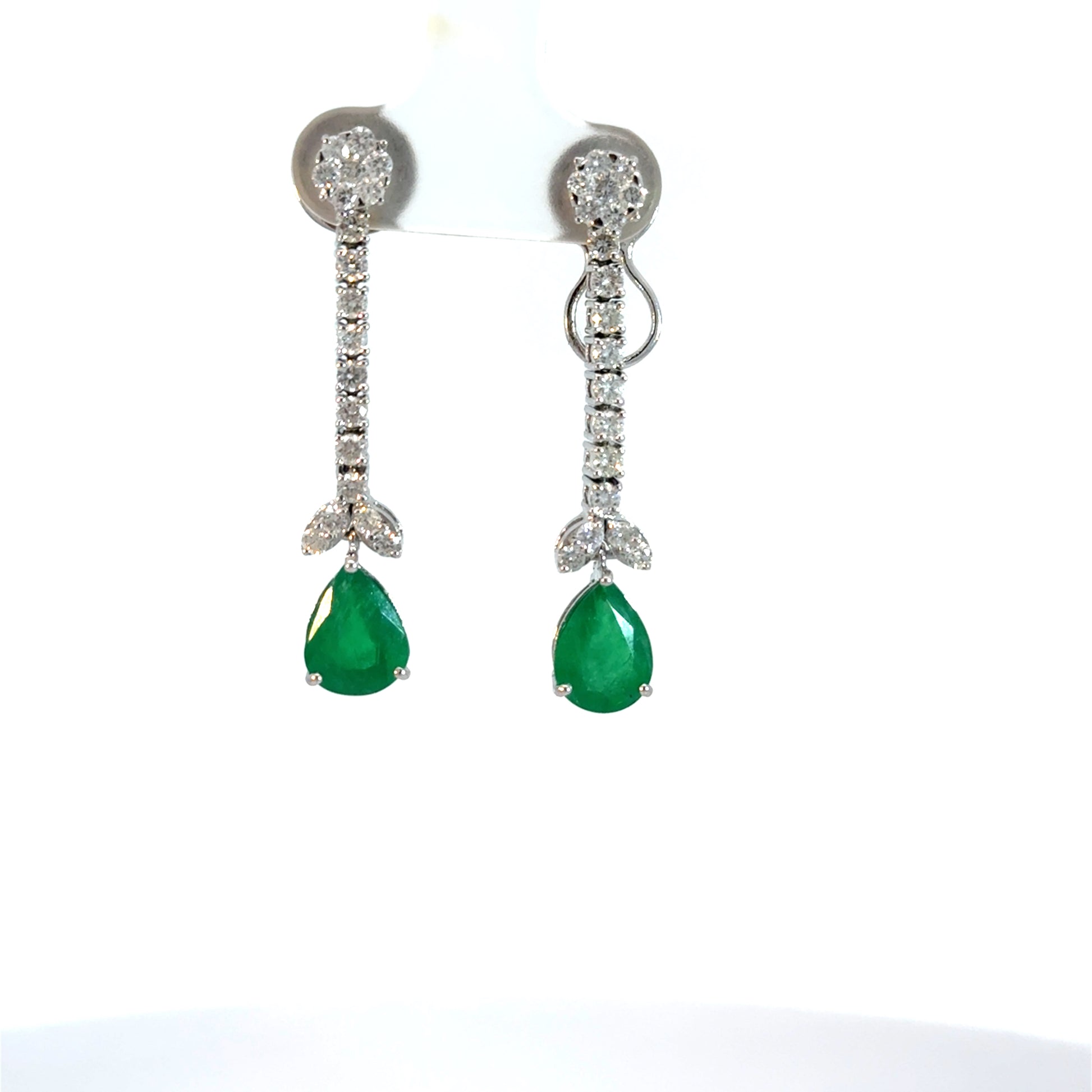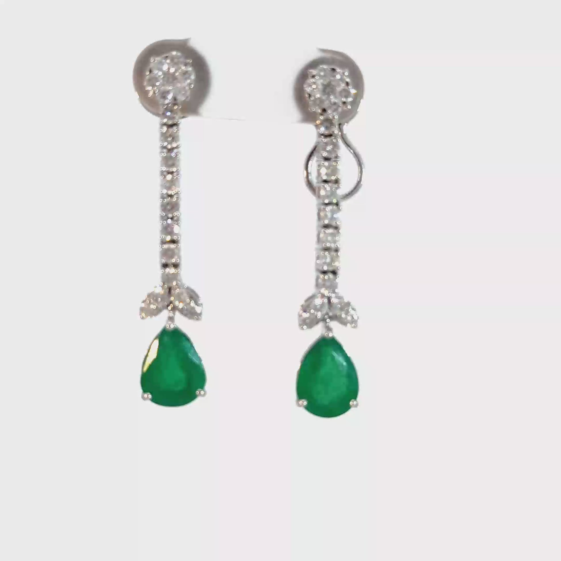 18K White Gold Earrings - with Natural Diamond and Emerald