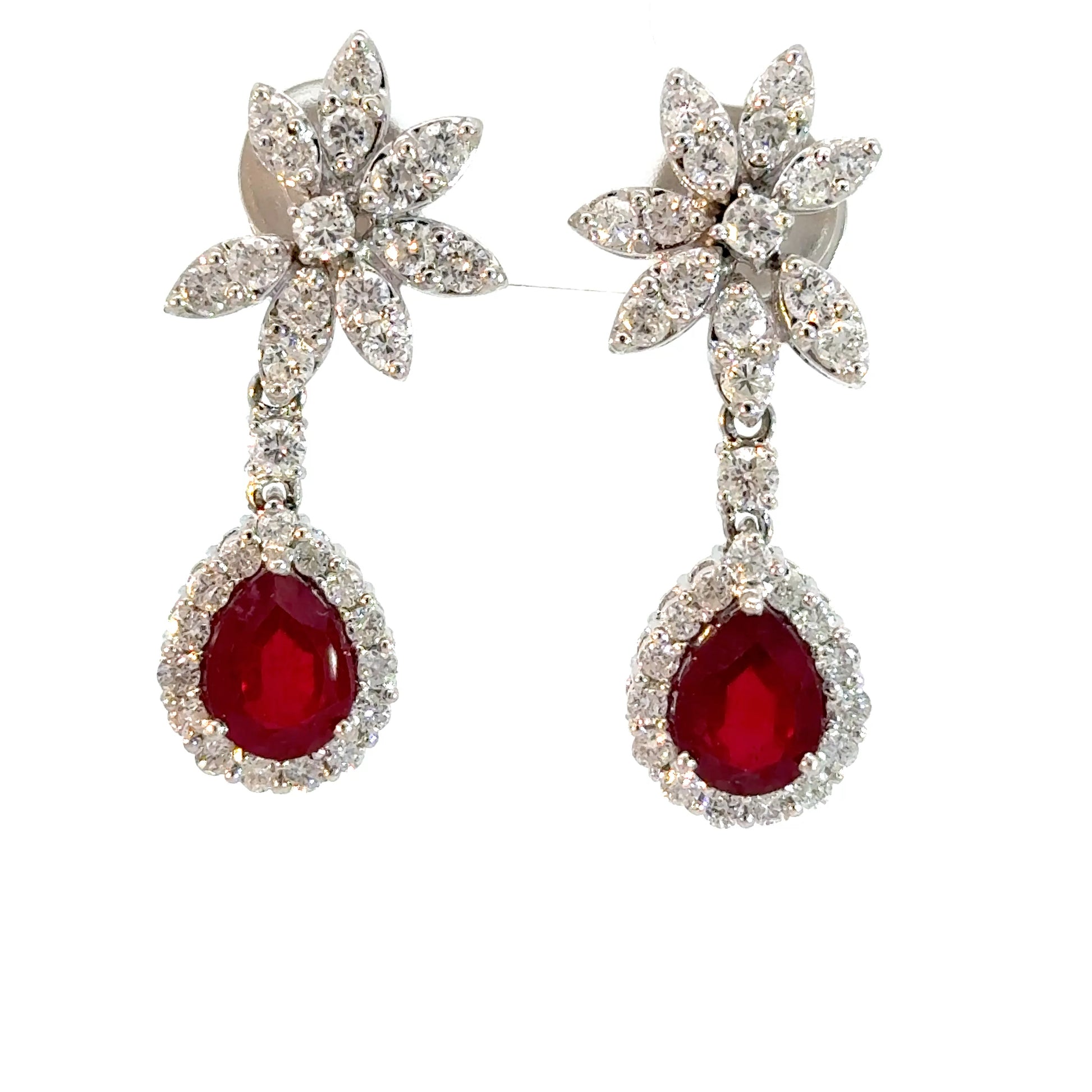 Elegant Ruby Earrings - With Natural Diamond and Ruby