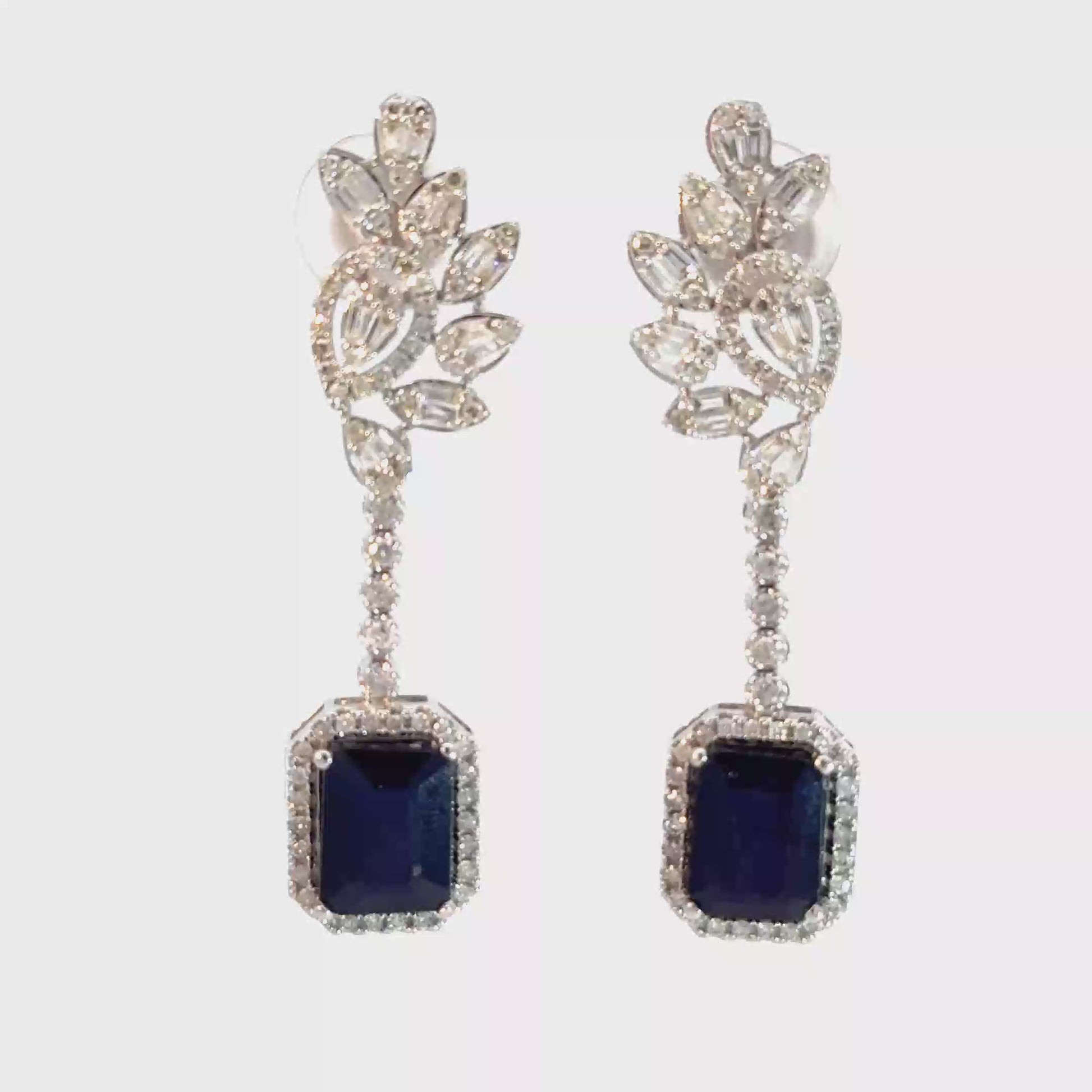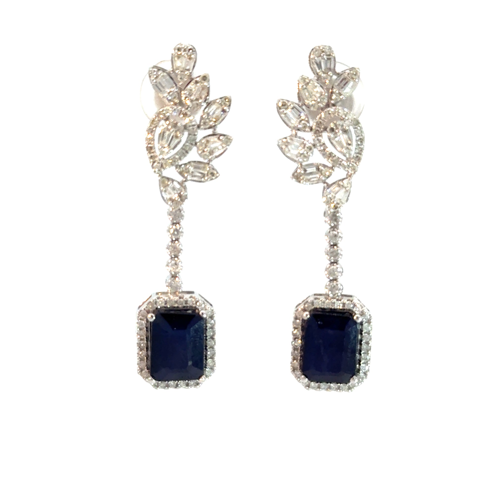 14K white Gold Earrings - Natural Diamond & Blue Sapphire