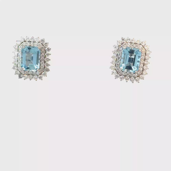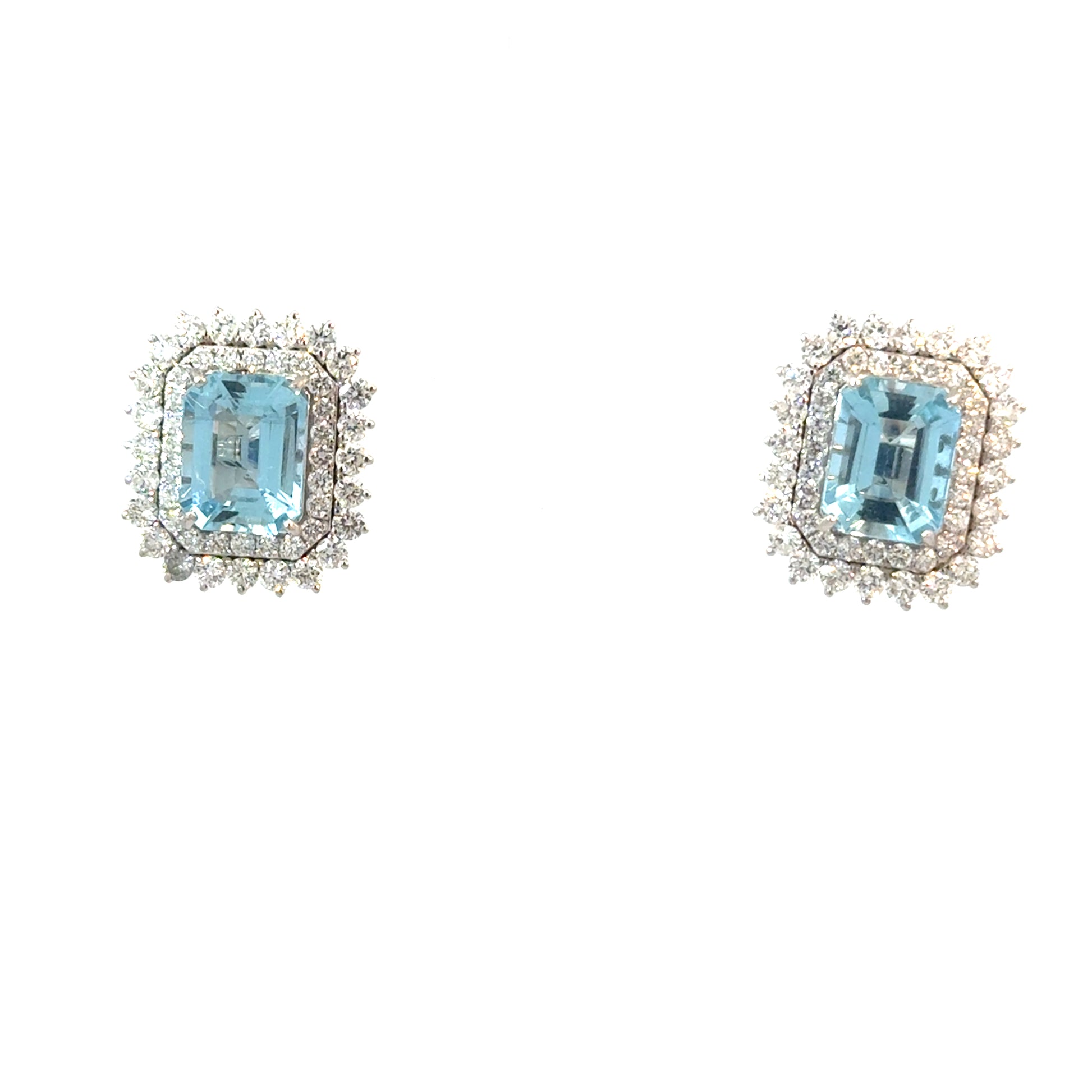 18K White Gold Aquamarine Studs Wt. Double Halo Natural Diamond