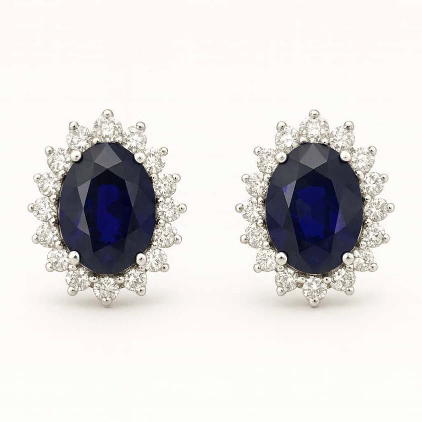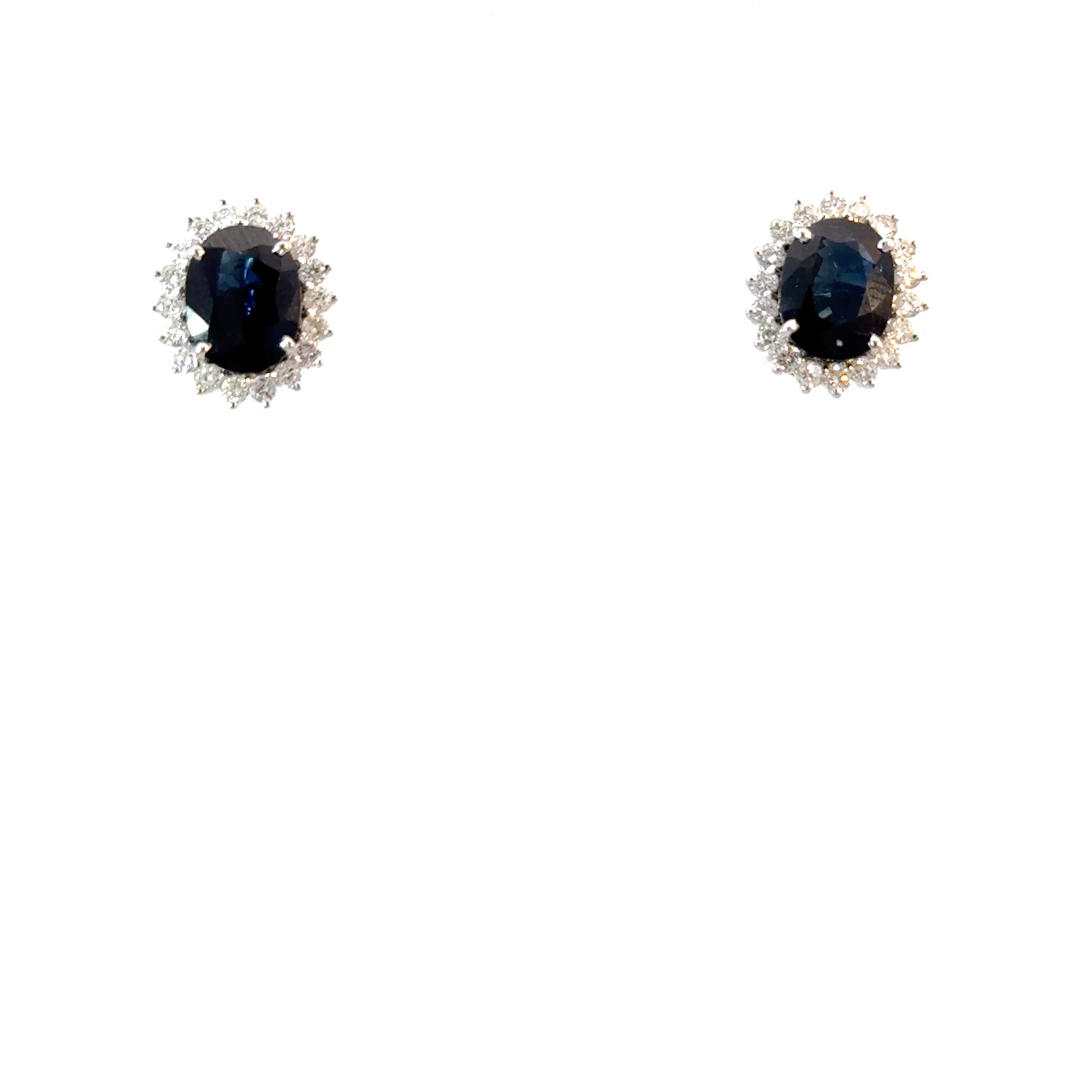 18K White Gold and Sapphire Studs Wt. Natural Diamond
