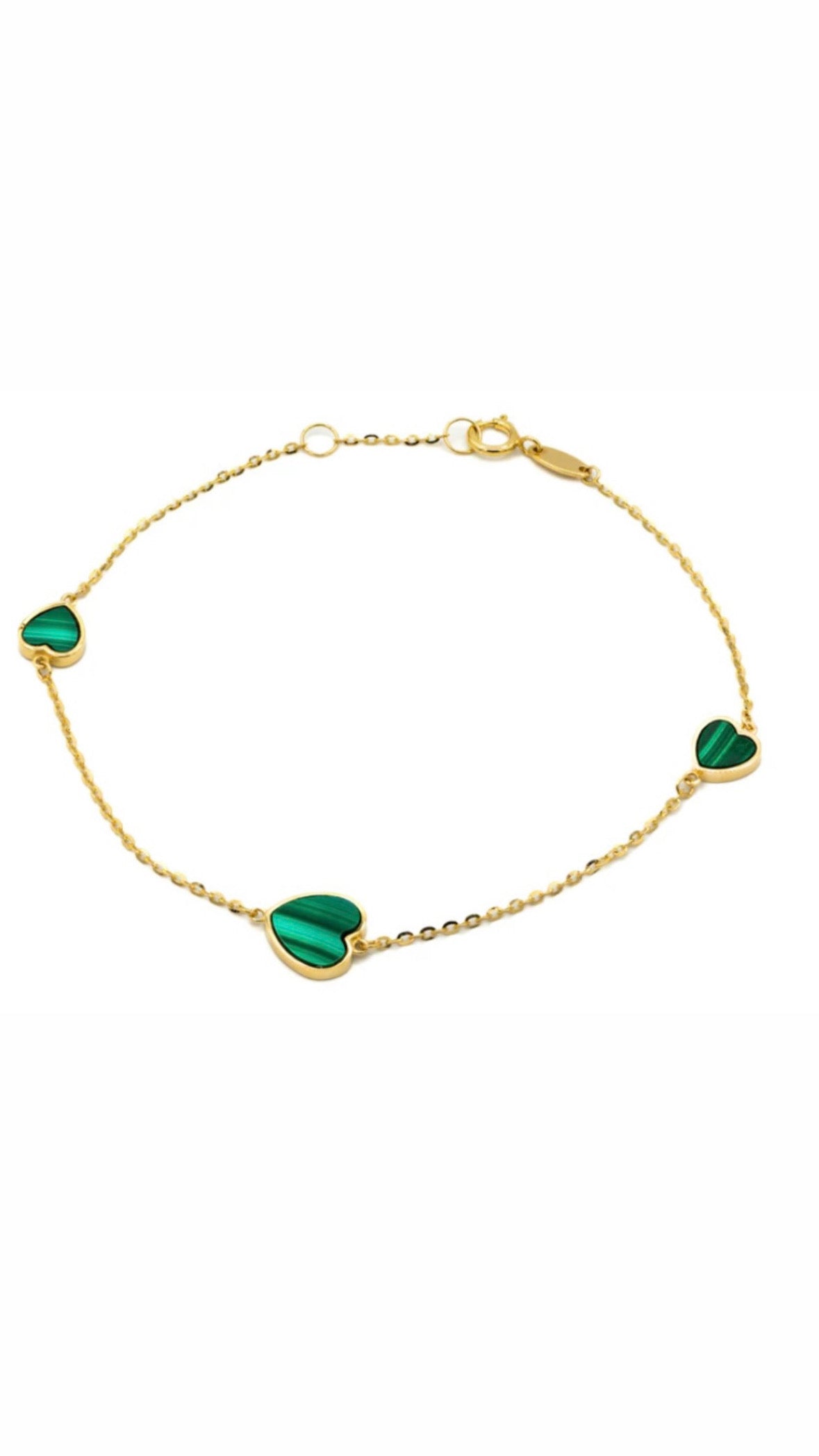 Look your heart's content with this amazing 14K gold bracelet! Featuring multiple hearts of genuine malachite, and perfect for everyday wear, it'll become your go-to accessory for adding a unique, stylish touch to any look!
