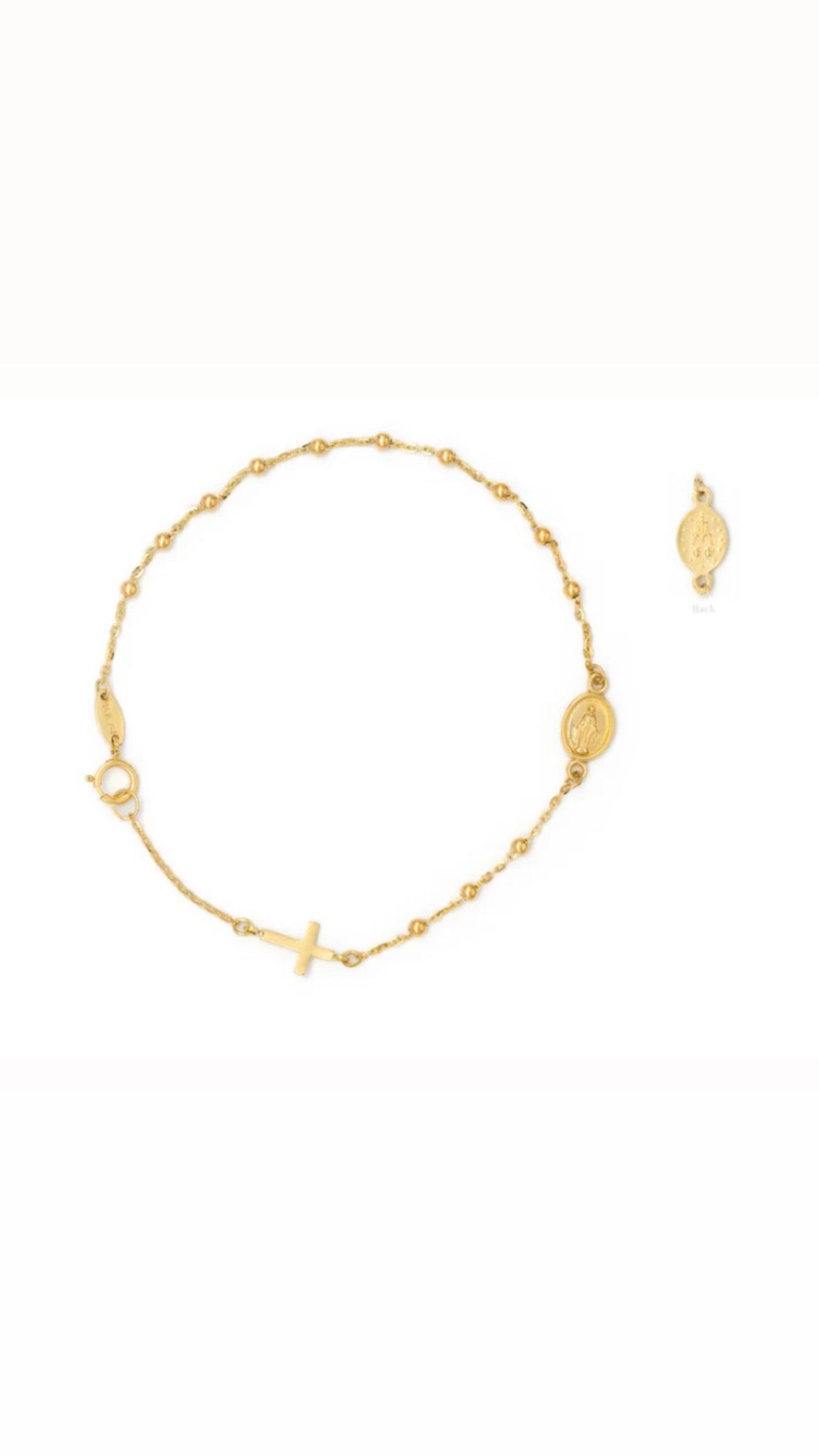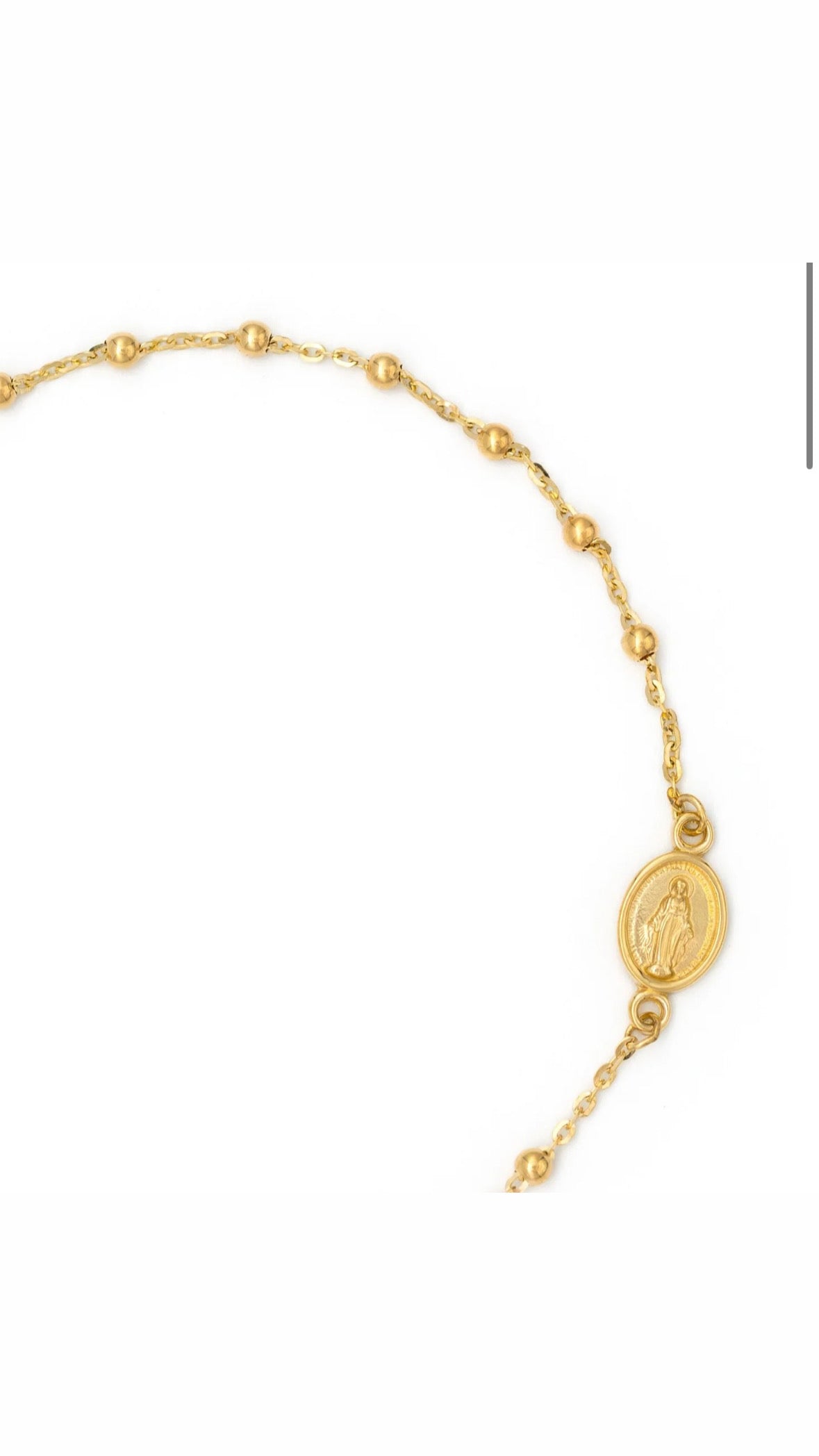 Treat yourself to divine style with this Rosary bracelet! Light up the room with its Miraculous charm, complete with a classic plain cross. At 7'' inches in total with 2mm beads, this is the #1 gift for holy occasions like baptism and First Communion!