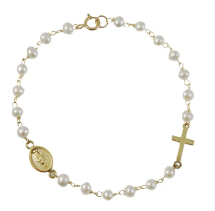 miraculous medal and cross pearl Bracelet