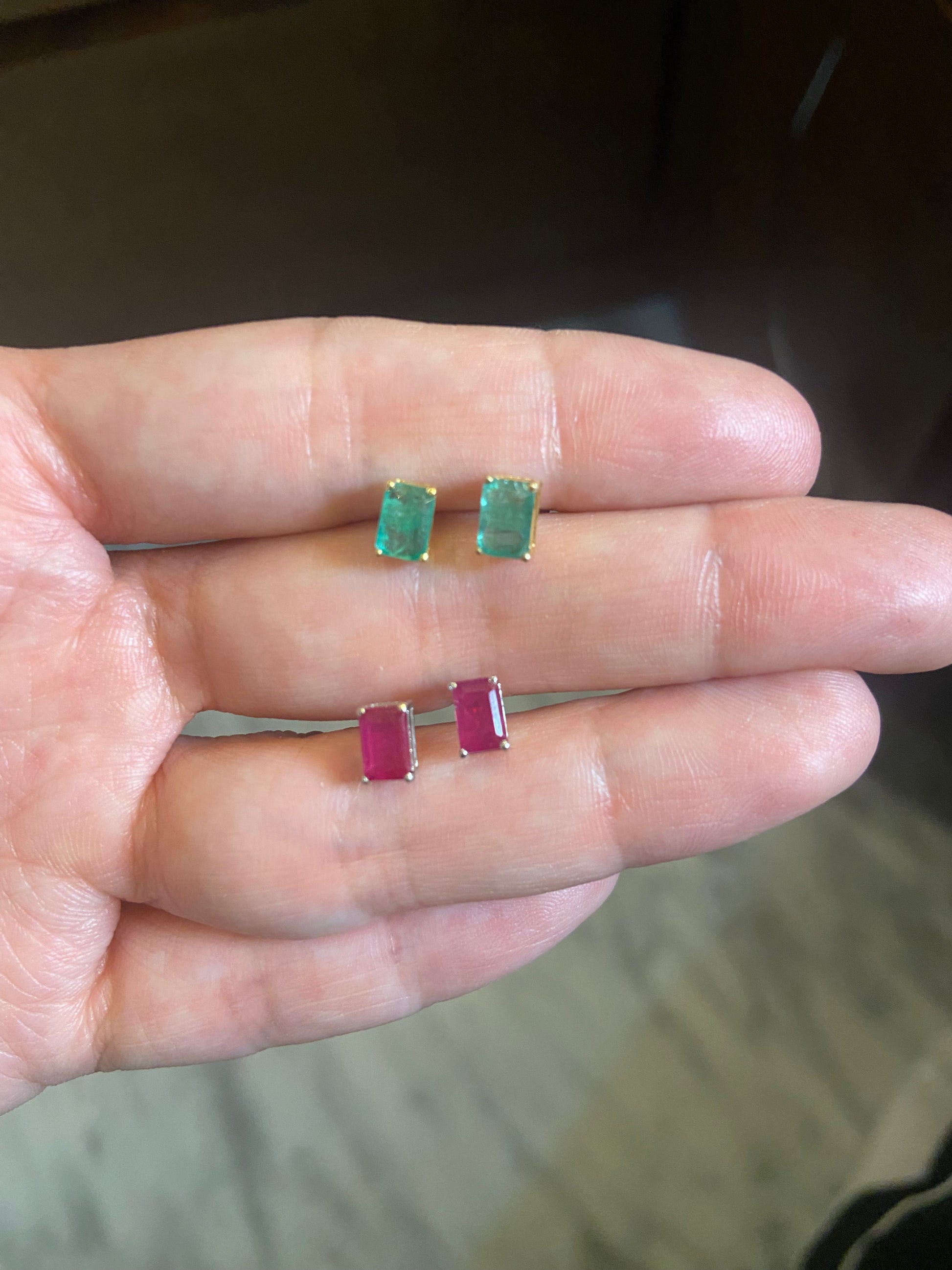 Emerald precious stone 1.10ct in yellow gold and Rubys precious stone 1.55ct in white gold