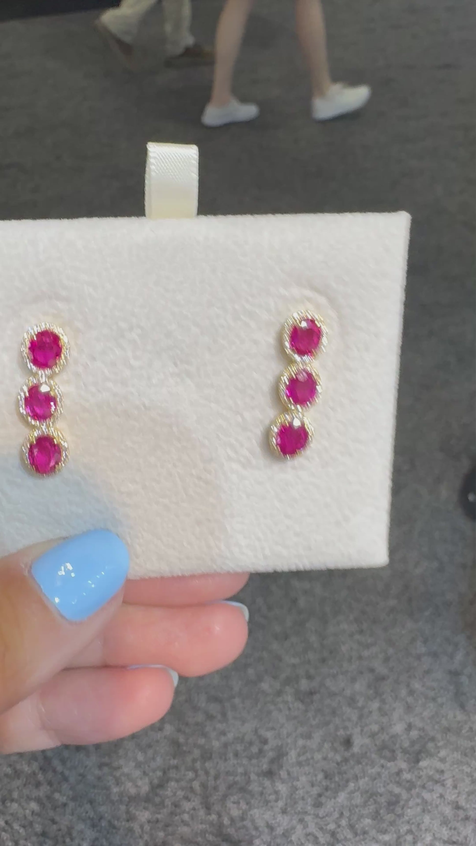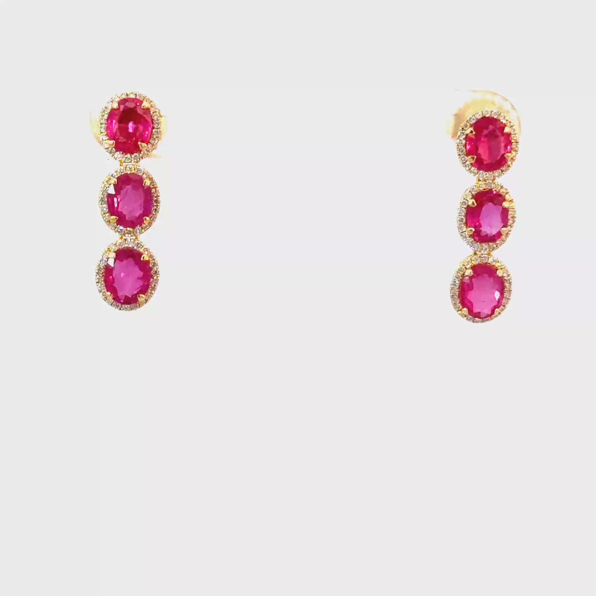 3 Stones Ruby Earrings