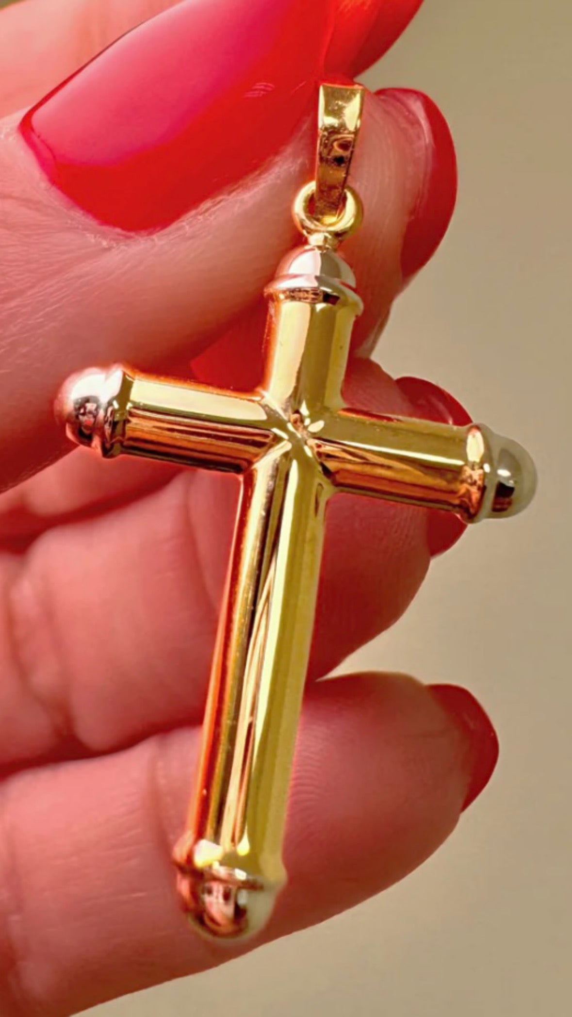 Embrace your faith with our Thick Tube Cross crafted in 14K gold, featuring a unique design with yellow and white corners. This striking cross pendant measures 27mm x 20mm and has a thickness of 4mm, making it a bold yet elegant statement piece. Perfect for expressing your devotion, this cross adds a touch of spiritual significance to any ensemble.